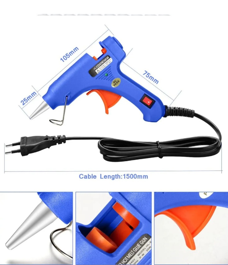 PACK X 3 Pistola De Silicona Electrica 20w Incluye 10 Barras De 7mm