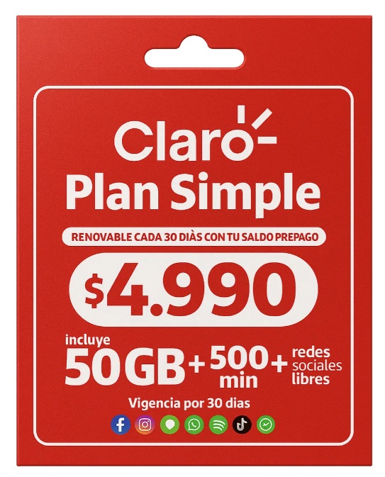 PACK X 25 Chip Claro Prepago Plan Simple 50gb+500min